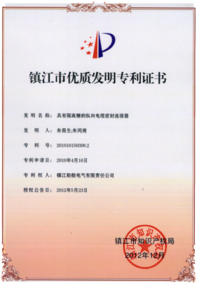 镇江市优质发明专利证书
