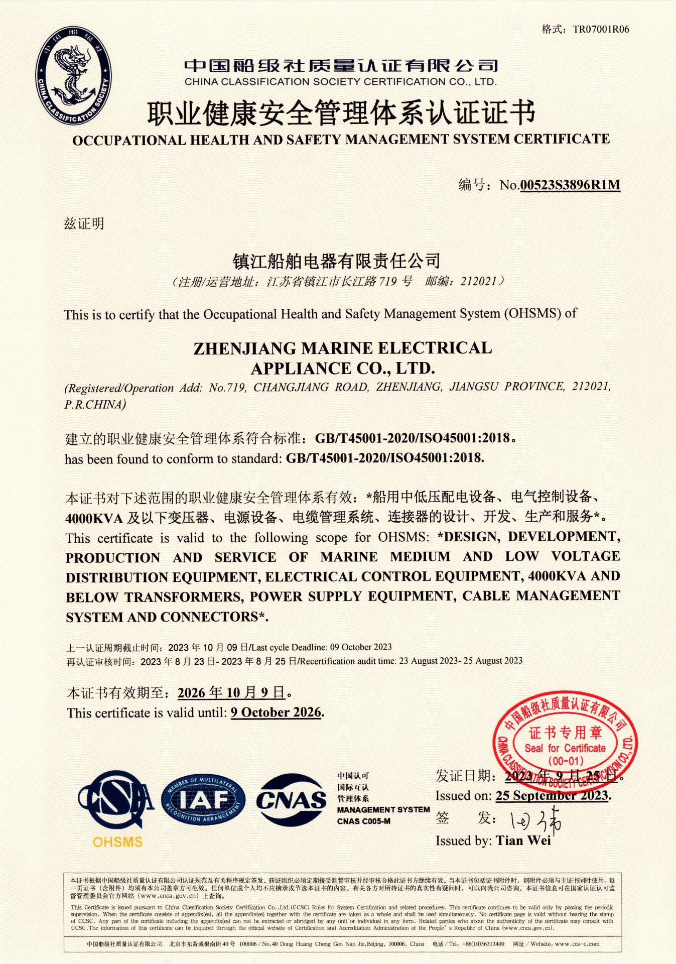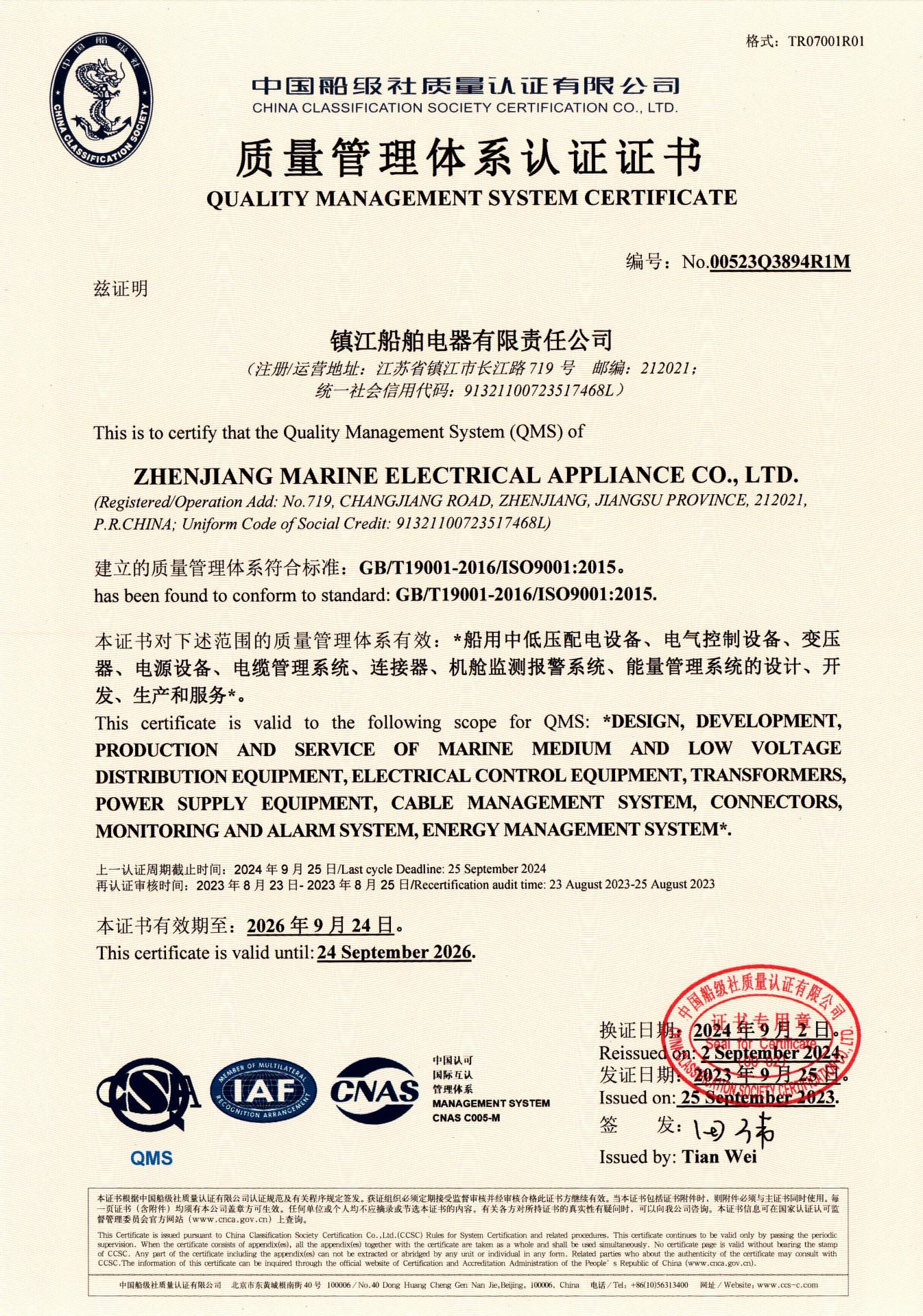 质量体系证书