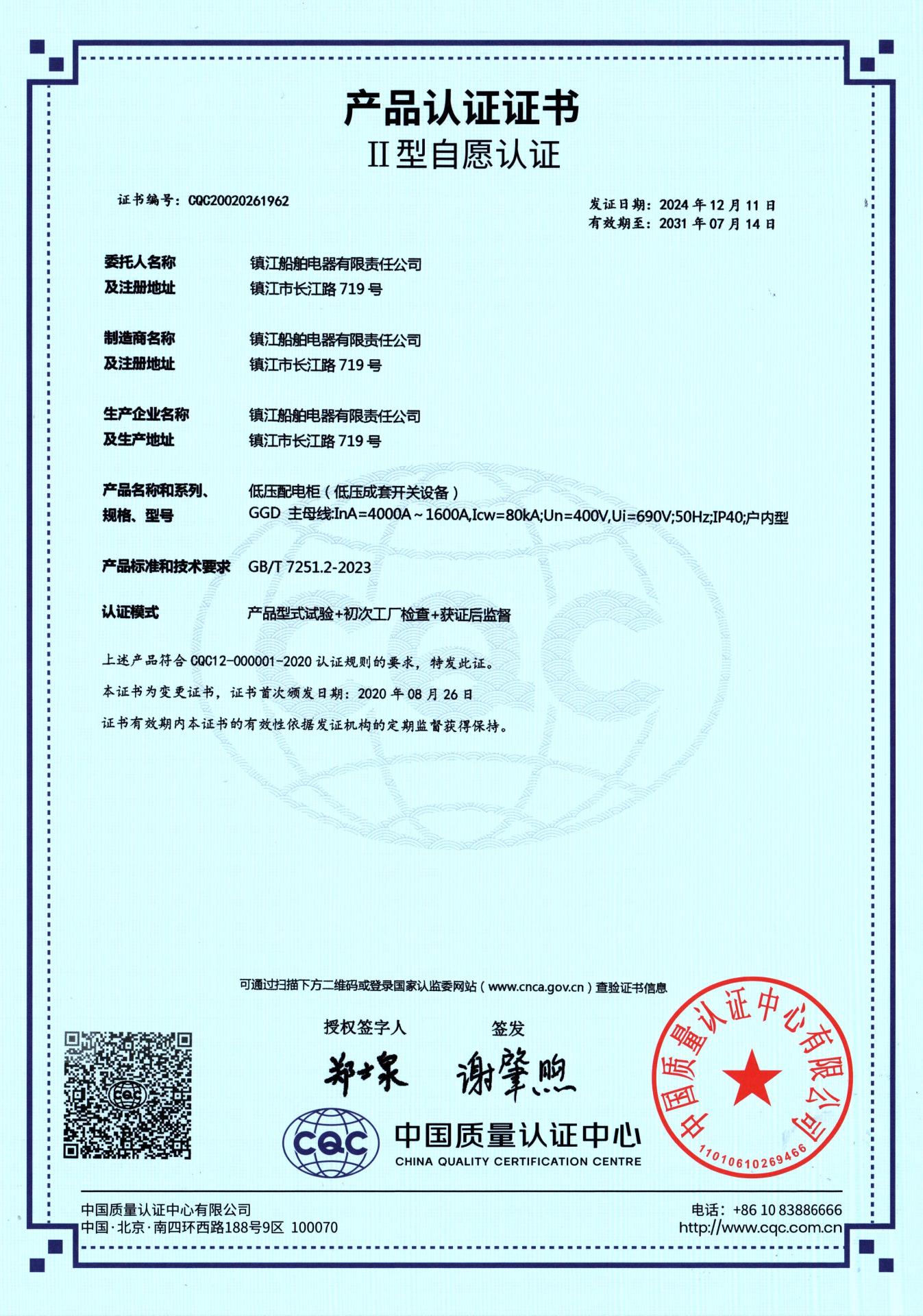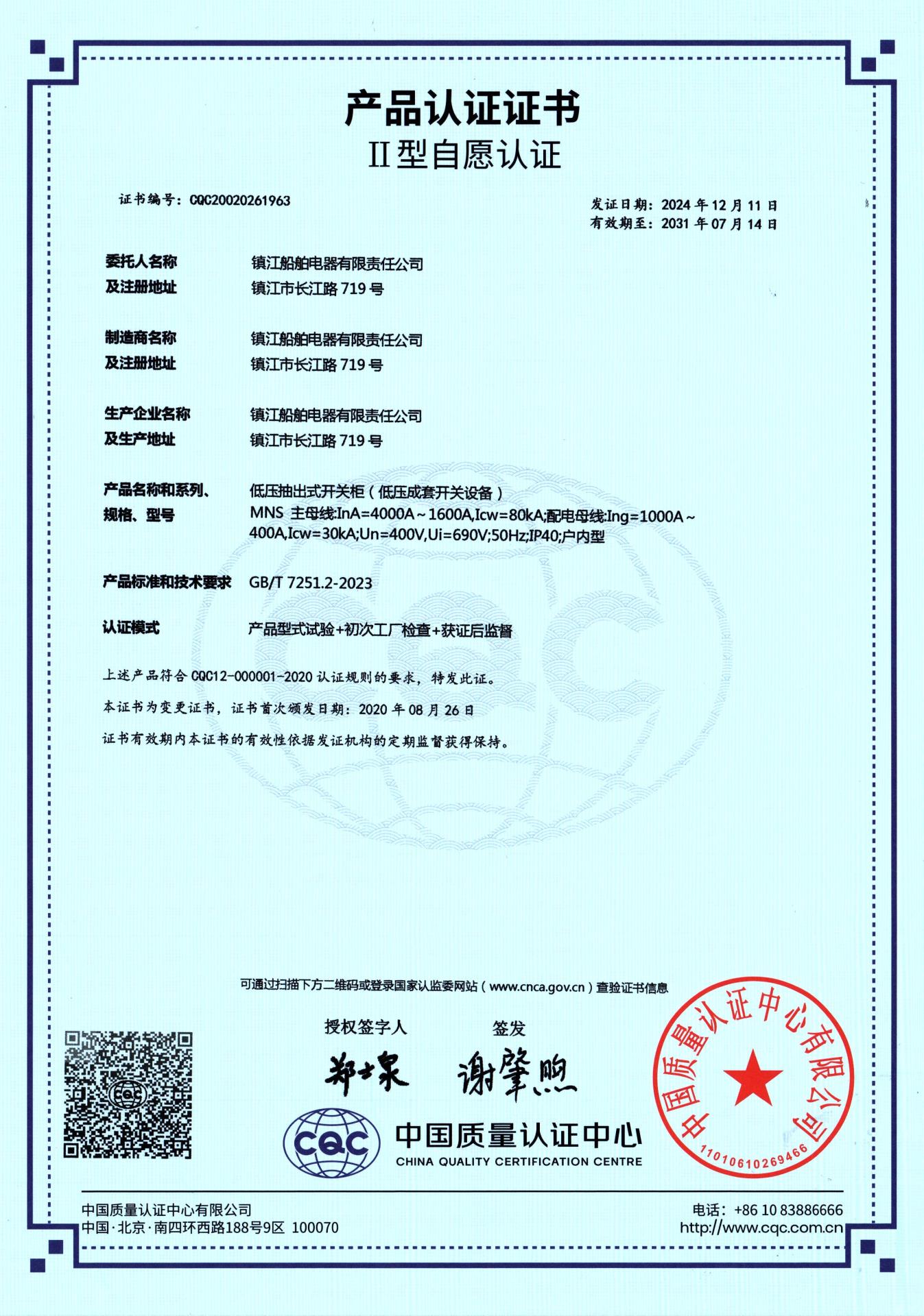 CQC产品认证-Ⅱ型(低压抽出式开关柜)