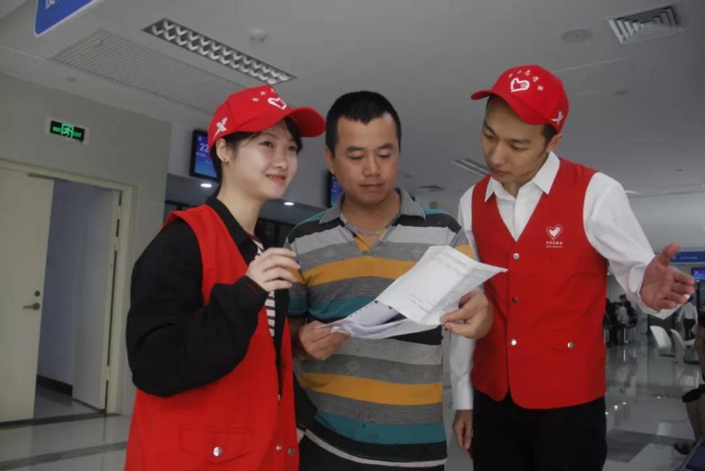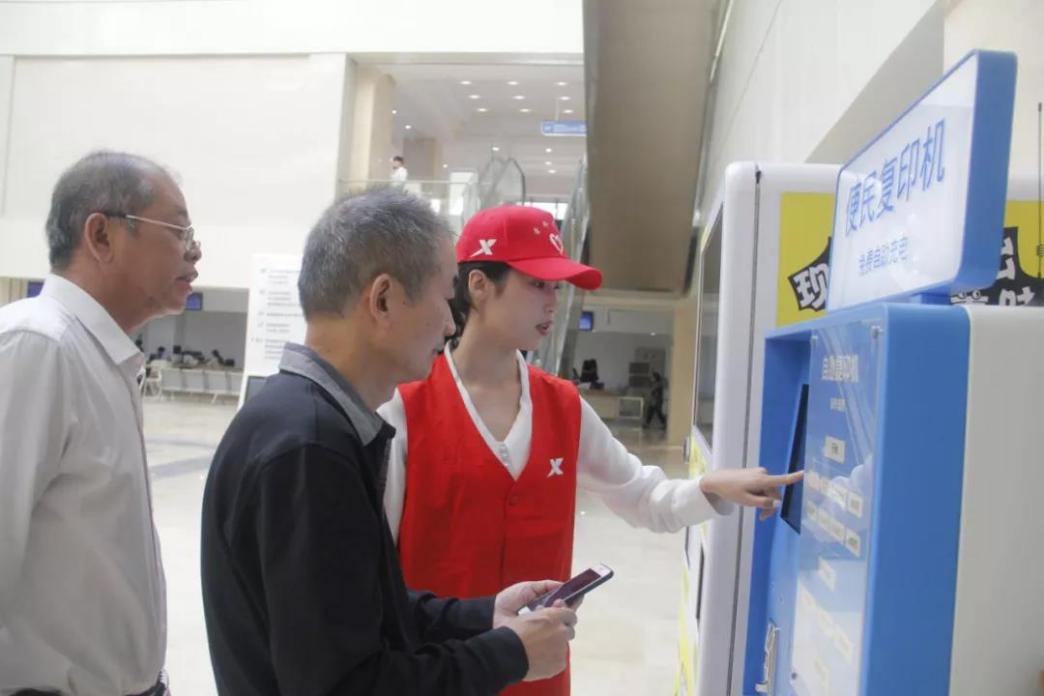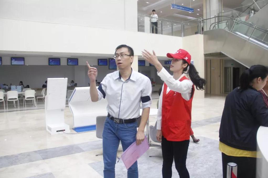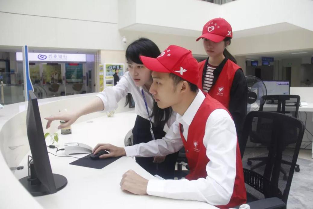 青年志愿者身着红马甲,穿梭在行政服务中心各个角落,当注意到前来办事的群众茫然无措时,他们会主动上前询问,积极为群众排忧解难。这样的场景在行政服务中心内,每天都在上演。