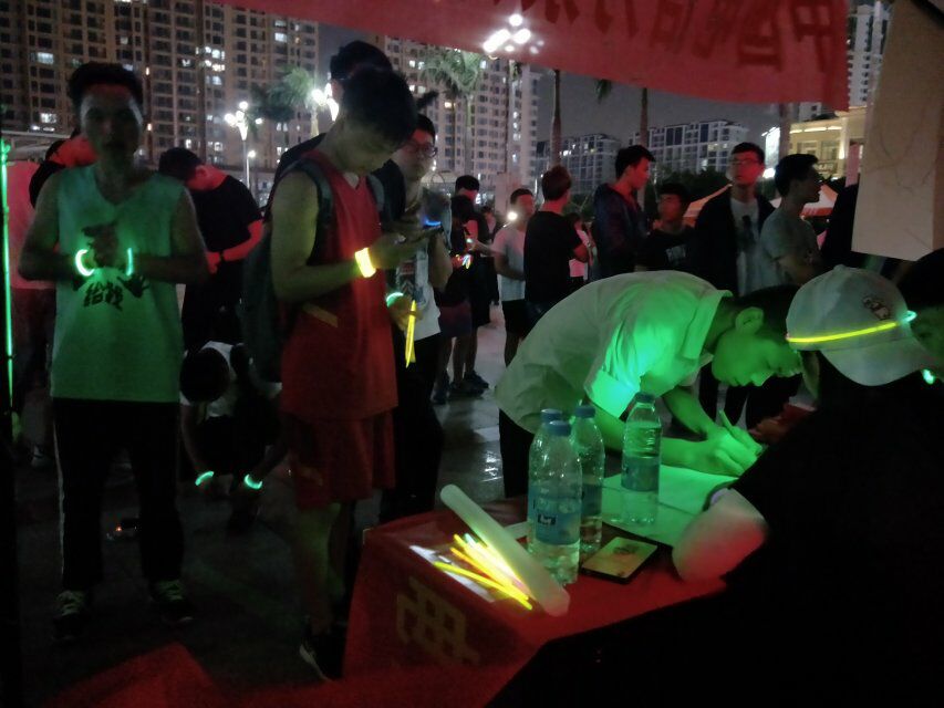 活动中处处彰显着大学生的无限创意。如:主办方在沿路以荧光棒构建出“加油青春”、奔跑者等不同创意图案;比赛特设情侣组,让恋人们拥有共同健身的甜蜜回忆;参赛人员发挥想象力,将不同的荧光棒拼成圆形、五环、项链等创意装饰物;活动将趣味性和竞技性融为一体,让人体会到运动的快乐。参加完活动的大学生有着这样的宣言:“你给我几个荧光棒,我将还你一个新世界!”