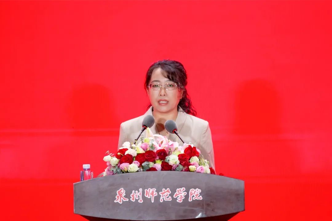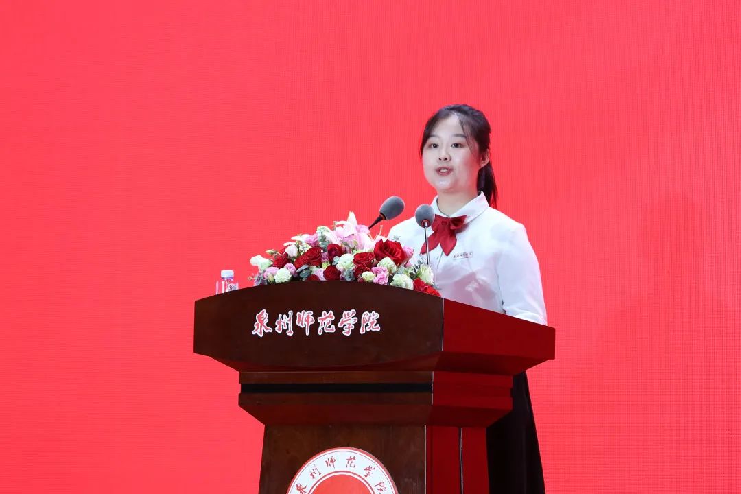 教师代表、南开大学博士后、第二届福建省高校教师教学创新大赛二等奖获得者、教育科学学院副院长邵华教授寄语毕业生,希望他们要常怀感恩之心,对支持和帮助自己走到今天里程碑的所有人心怀感恩;要科学应对压力,努力在压力事件中寻找意义,努力在日常生活中发现美好。勉励同学们要找到自己与众不同的优势和特长,做眼中有光芒、脑中有认知、心中有责任的新时代中国青年!