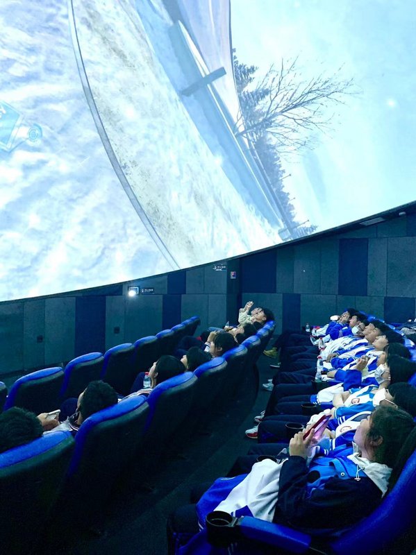 跟随科技馆讲解员脚步,同学们来到了球幕影院,来自晋江华侨职业中专学校的次仁措姆同学在观看完球幕电影《神州大地》时表示:我除了感受到了电影中的神奇特效,更深刻感受到了祖国这片广袤的神州大地上,上下五千年的文明史。从北京故宫长城到黄河壶口瀑布,在这充满动感和震撼的视听世界中仿佛足迹已经踏遍祖国各地。