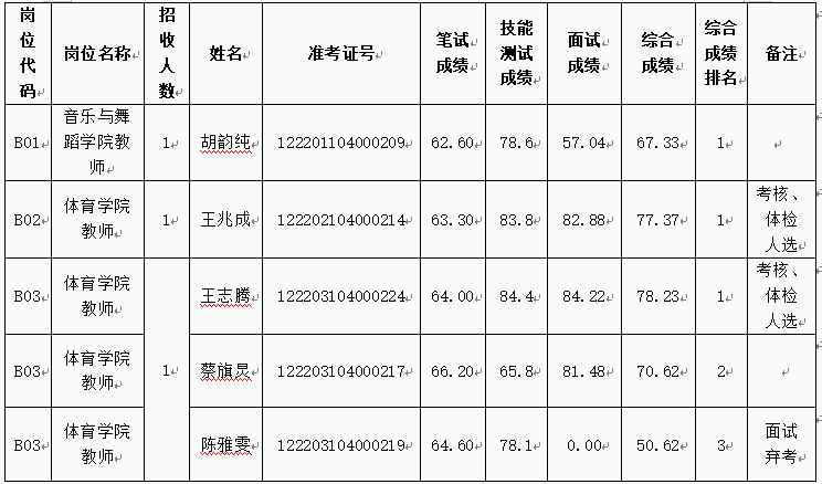 上述考核、体检人选应按要求参加体检。体检标准及项目参照公务员录用体检及项目标准执行。报考人员无特殊情况未按时体检的,视为自动放弃。考察、体检不合格或报考人员自动放弃的,按考试总成绩排名顺序由高到低依次递补。具体安排如下: