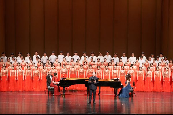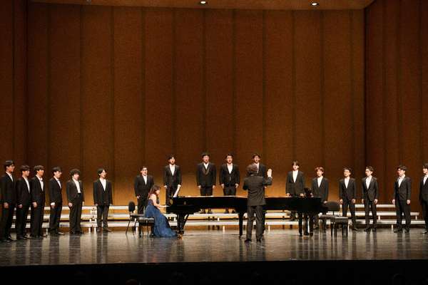 音乐会分为上、下半场上半场的节目中,音乐与舞蹈学院男生合唱团带来小合唱《在太行山上》《游击队之歌》。下半场作为演出的重头戏,音乐与舞蹈学院混声合唱团再现了《黄河大合唱》这部民族史诗的恢宏气魄。从《黄河船夫曲》开启,紧接着《黄河颂》《黄河之水天上来》《黄水谣》《河边对口曲》《黄河怨》《保卫黄河》《怒吼吧!黄河》依次上演,通过独唱、朗诵、对唱等演绎方式,表达出磅礴雄伟、深邃壮阔的情感,感染了现场的上千名观众。最后,音乐会在合唱《歌唱祖国》的激昂歌声中落下帷幕。(音乐与舞蹈学院)