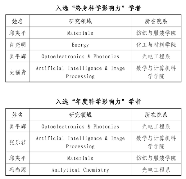 近日,美国斯坦福大学(Stanford University)和国际权威学术出版社爱思唯尔(Elsevier)共同发布2025年全球前2%顶尖科学家榜单(World's Top 2% Scientists),榜单共分为“终身科学影响力榜单”(关注整个学术生涯迄今的影响力)和“年度科学影响力榜单”(聚焦本年度的学术成就)。据统计,我校4位学者入选“终身科学影响力榜单”,4位学者入选“年度科学影响力榜单”。此次6位学者的成功入选,彰显了我校高端人才的学术影响力和卓越成就,凸显了我校近年来在高水平师资队伍建设和高质量学科建设方面取得显著成效。